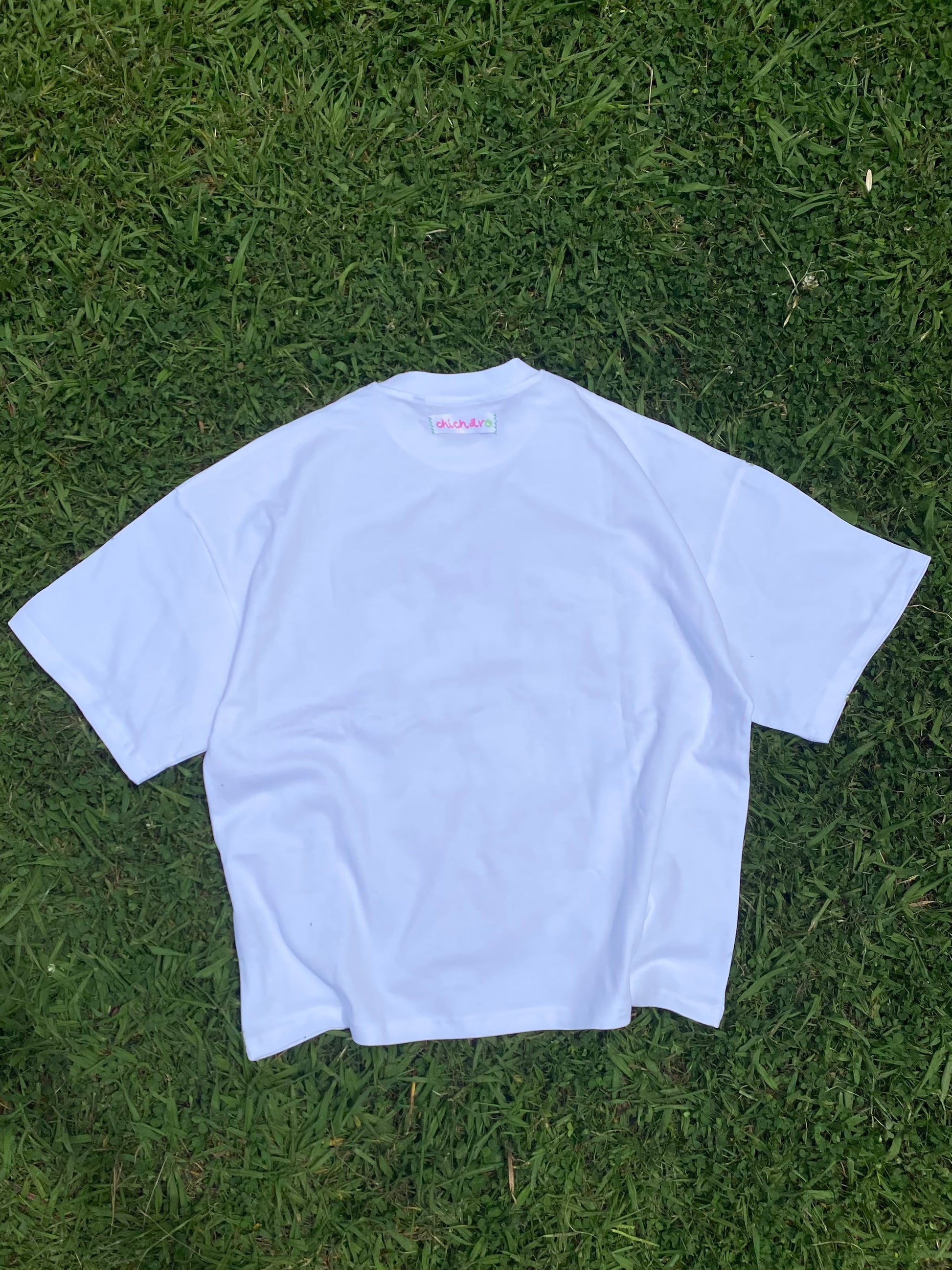 Camiseta de manga corta con corte oversize boxy y estampado en el delantero, confeccionada en 100% algodón orgánico de alta calidad y fabricada en Portugal.