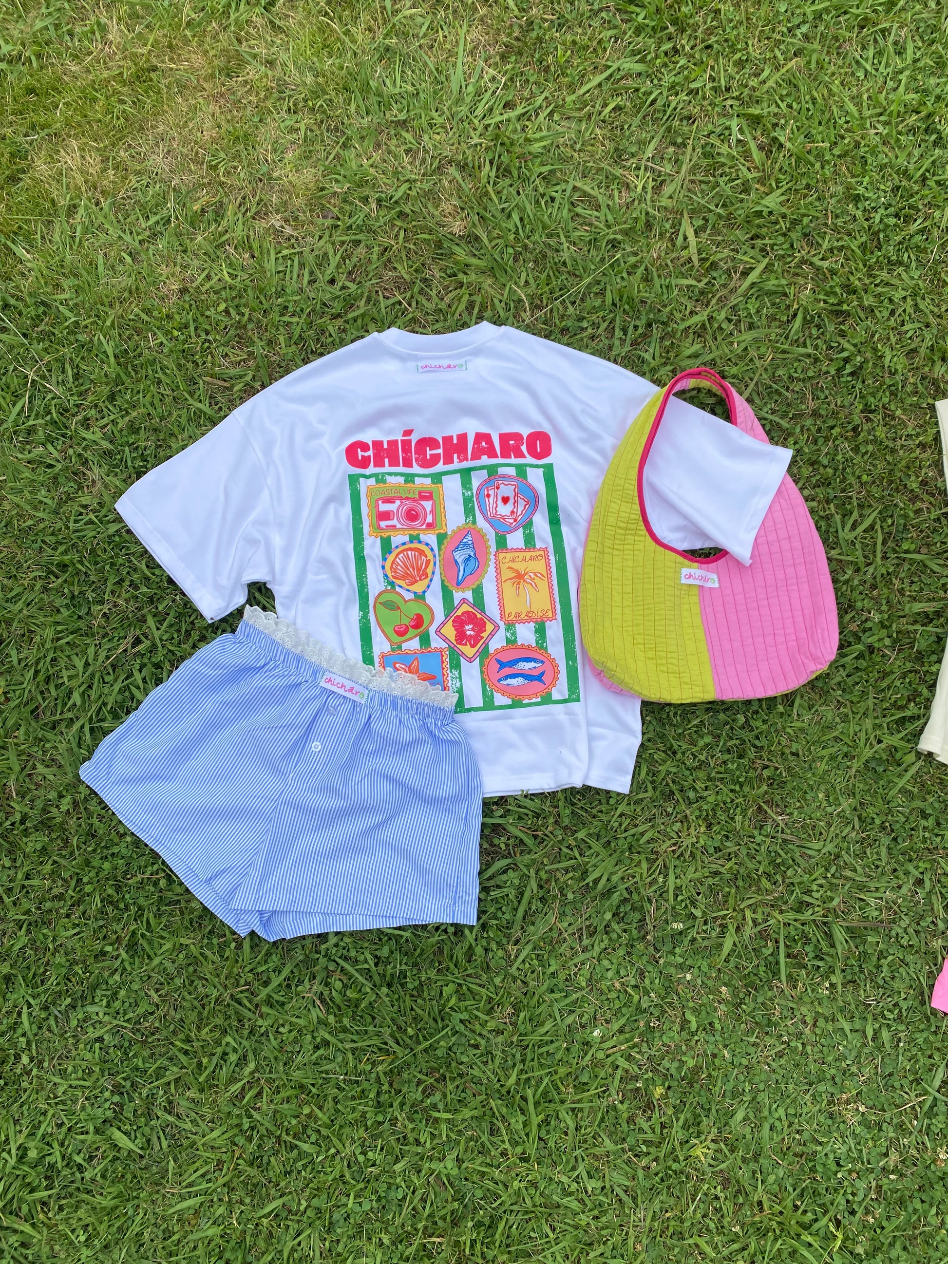Camiseta de manga corta con corte oversize boxy y estampado en el delantero y espalda, confeccionada en 100% algodón orgánico de alta calidad y fabricada en Portugal.